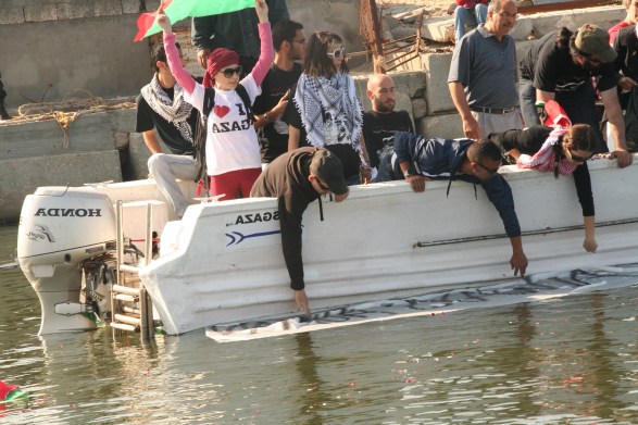 tThee meeting comes to an end in front of a harbor packed with small boats, each with its own history of resistance; amongst these boats we spot OLIVA, the small boat launched as a tribute to Vittorio Arrigoni a few days after his death. The OLIVA will carry on the monitoring, accompaniment and shielding missions that Vittorio undertook, driven by the dreams of a Mediterranean Sea without borders, where each and everyone may have the right to travel across its waters and explore its shores freely and unharmed. OLIVA, like all the projects in which Vik was involved, has the support of the various groups converging within the convoy, such as the popular comittees against the separation wall and settlements, which made possible the realisation of this dream- this international boat was inaugurated during the first day of the Bil’in Conference on Popular Resistance.