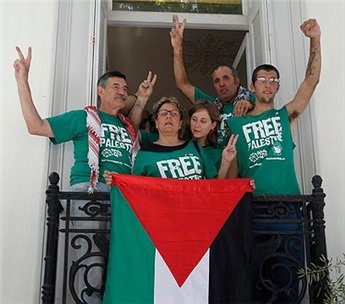 According to the international media world that dozens of activists from Gaza Flotilla II, most of the campaigners are of Spanish nationality, they enter in the afternoon “Tuesday,” in the Spanish Embassy building asking Spanish ambassador to intervene in Greece to lift its ban on the vessels of the fleet anchored off the island of Crete and allow it to go to Gaza.