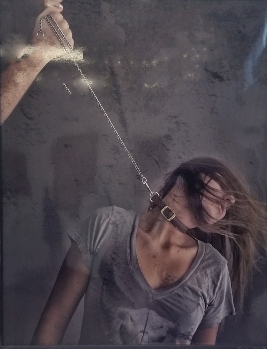Domestic Violence a Personal Journey. “Leashed” A photo of a photo at Orange Coast College Gallery, on April 15, 2015. Costa Mesa Cali. Photo/Marivel Guzman
