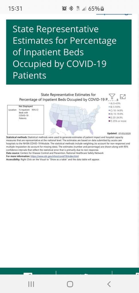 I did a quatitative analysis based for Arizona, the state with more inpatient COVID-19 occupied beds. has 16,000 licensed inpatient hospital beds. That is only 1.9 per every 1000 patients. According to the US Census Bureau, Arizona population is