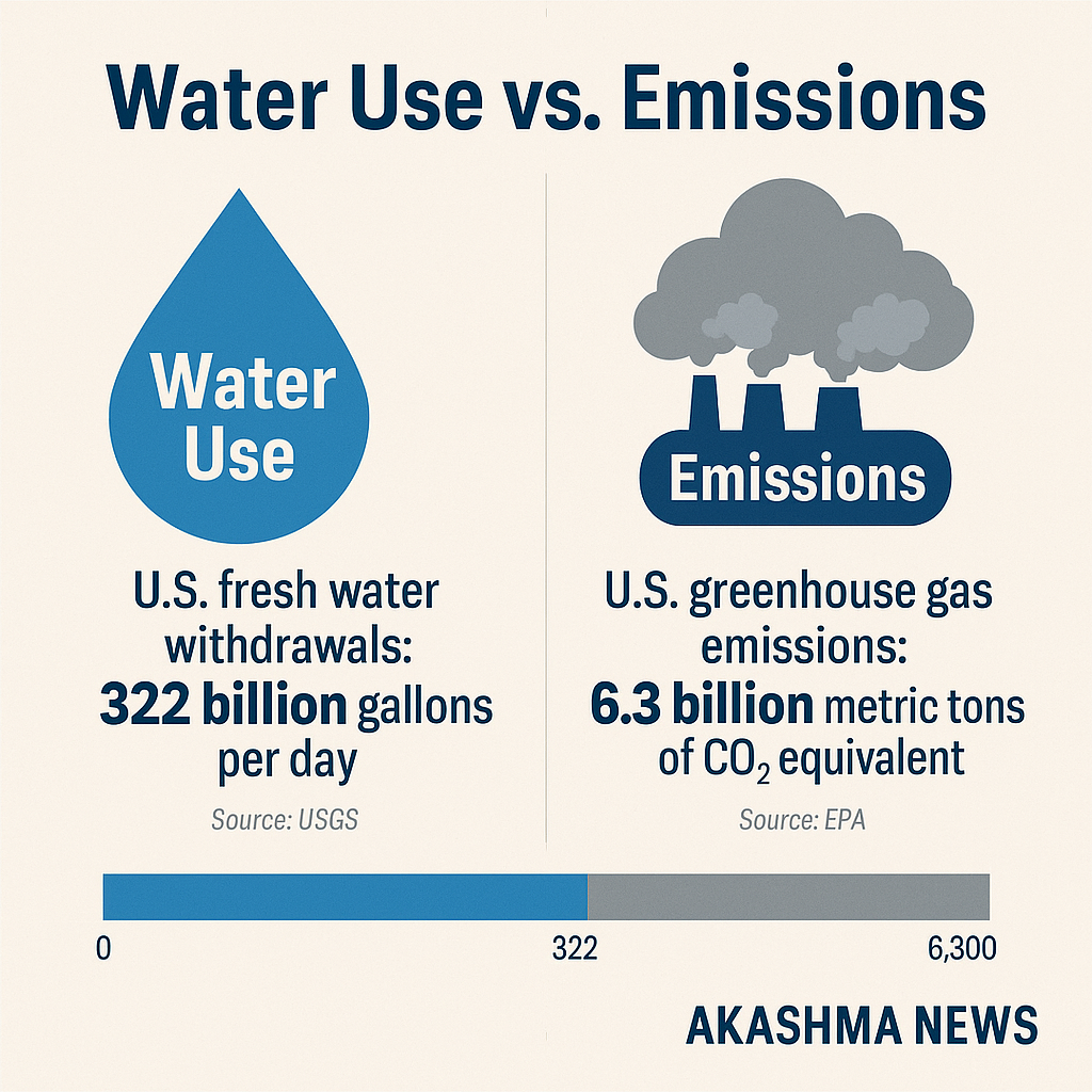 This infographic reveals the stark contrast between the U.S.’s massive daily freshwater use (322 billion gallons) and its CO₂ emissions (6.3 billion metric tons). As Marivel Guzman writes, “Earth is not just warming—she is thirsty.”