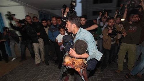 > Palestinian rushing to the hospital with an injured child July 20 2014