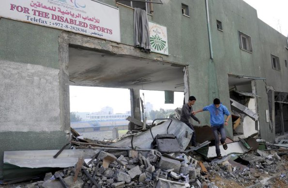 Young boys playing in the rubble of the Palestine Stadium in Gaza City which was the target of Israeli airstrikes. UN Photo/Shareef Sarhan